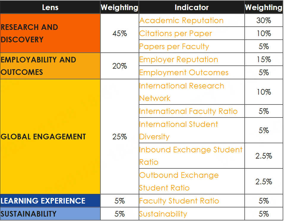 排名指标共分为五大核心板块,总权重分配各有侧重: