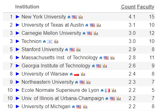 美国:卡内基梅隆大学(CMU)位列全球第3,伊利诺伊大学香槟分校(UIUC)位列第5;