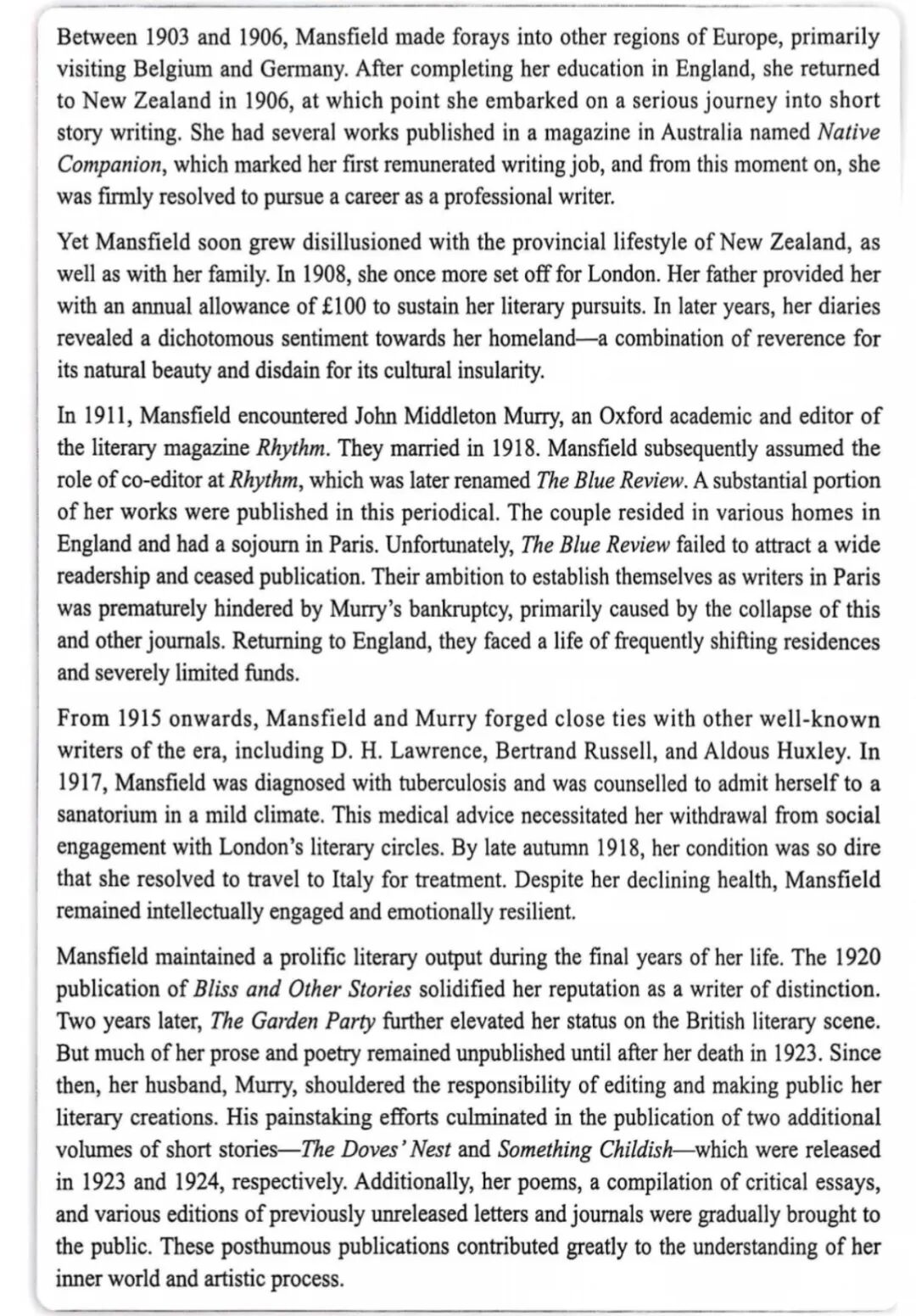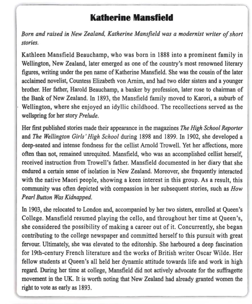 Pasasage 1 Katherine Mansfield