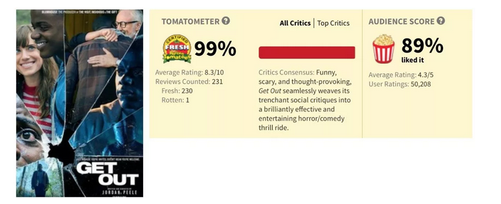 外媒更是评价,《逃出绝命镇》充斥着俏皮话并夹杂着紧张感,是专门针对美国当下形势创作的一部杰作。