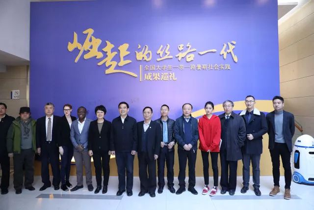 与会嘉宾与各高校师生在活动结束后共同参观了设置在会议外场的《“崛起的丝路一代”——全国大学生一带一路暑期社会实践成果展》,展览以图文结合的形式对此次实践总结凝练的十大成果进行了深度展示。