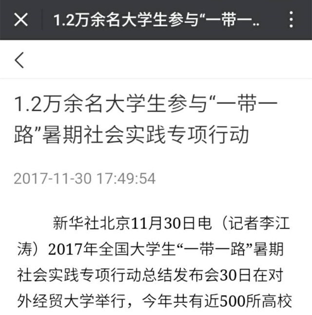 2017中国大学生“一带一路”暑期实践专项行动报告