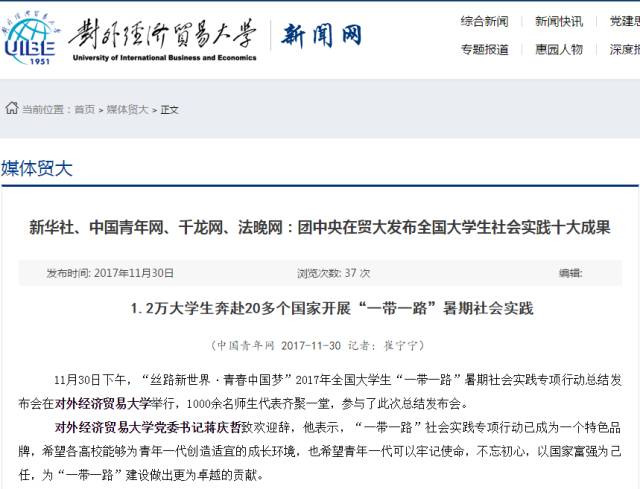 11月30日,“丝路新世界·青春中国梦”2017年全国大学生“一带一路”暑期社会实践专项行动总结发布会在对外经济贸易大学举行,同时也为前后总历时5个月的活动画上了圆满句号。