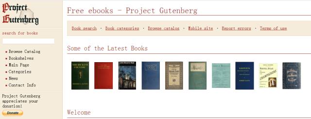 ManyBooks是一个专门提供免费电子书下载的网站,它所提供的免费电子书超过2万本。你可以通过分类,作者,书名和余元进行搜索查询,所有电子书都可以下载保存为Doc,PDF,RTF,JAR,TXT等多种格式。