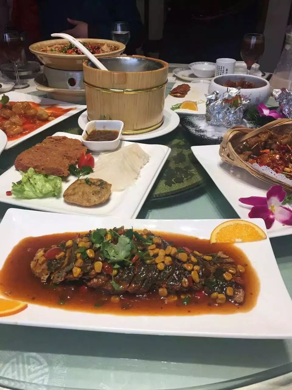 藕做的“糖醋排骨”,豆腐、海苔、青椒制成的“酱椒鱼”,萝卜、金针菇、芹菜混合调色做成“龙虾”等等。