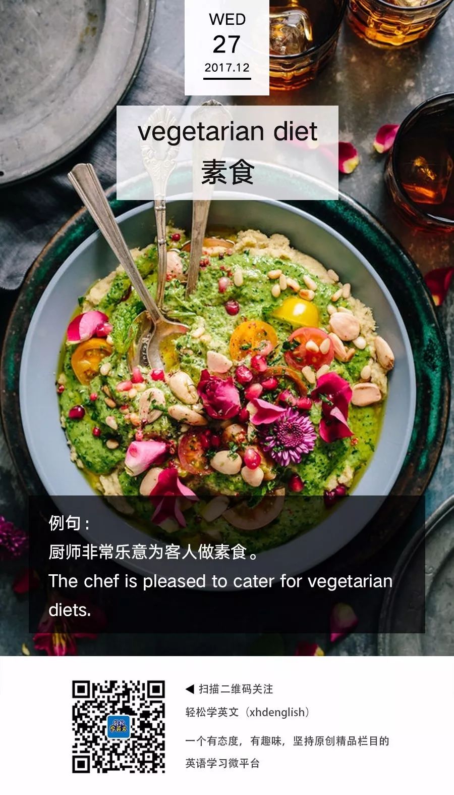 素食可以直接用vegetarian diet表示,也可以说plant foods(素食)。