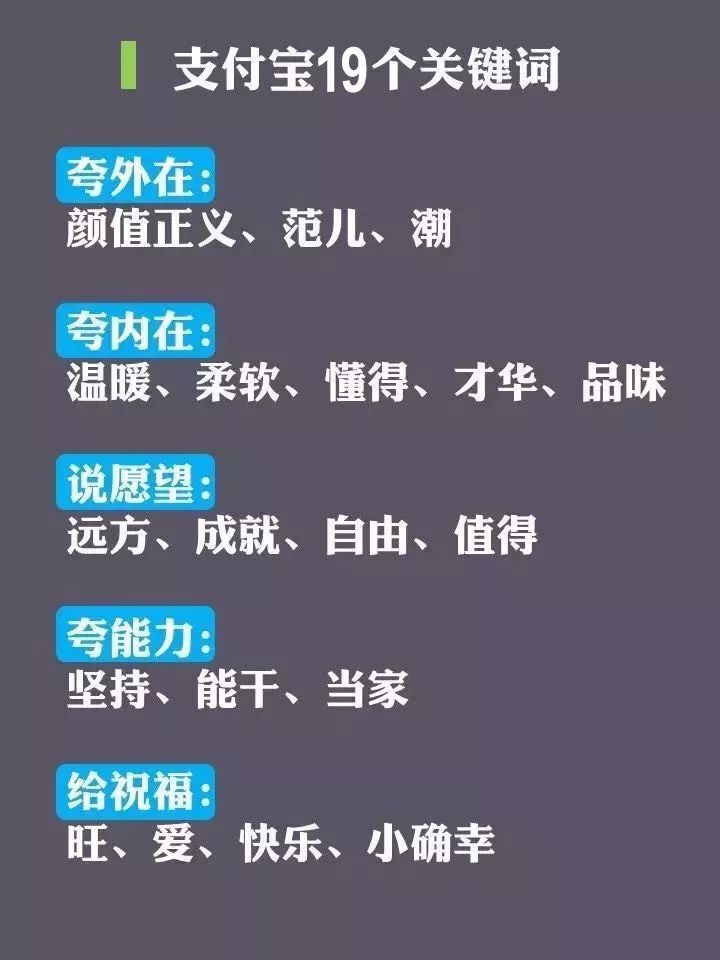 根据大数据算法,官方给出了19个关键词,大部分人表示很准。不过这有点像星座里的套路,这些褒义的祝福辞套在所有人的身上可能都会觉得和自己有一定的匹配度吧~