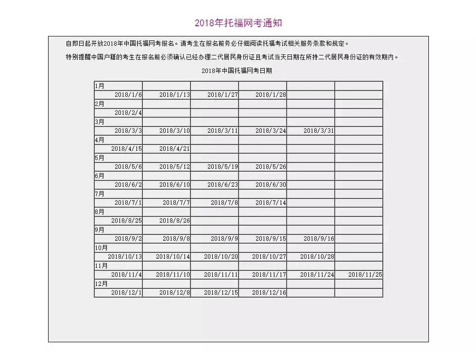 2018年4月至12月雅思考试报名截止日期、准考证打印日期和成绩单寄送日期