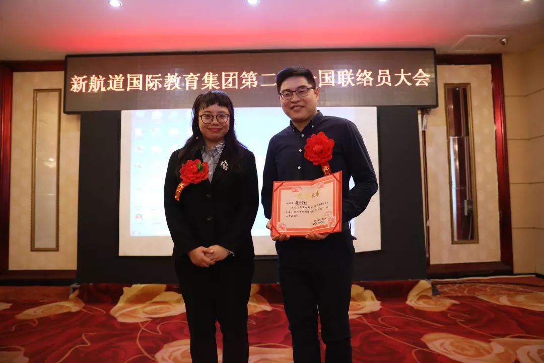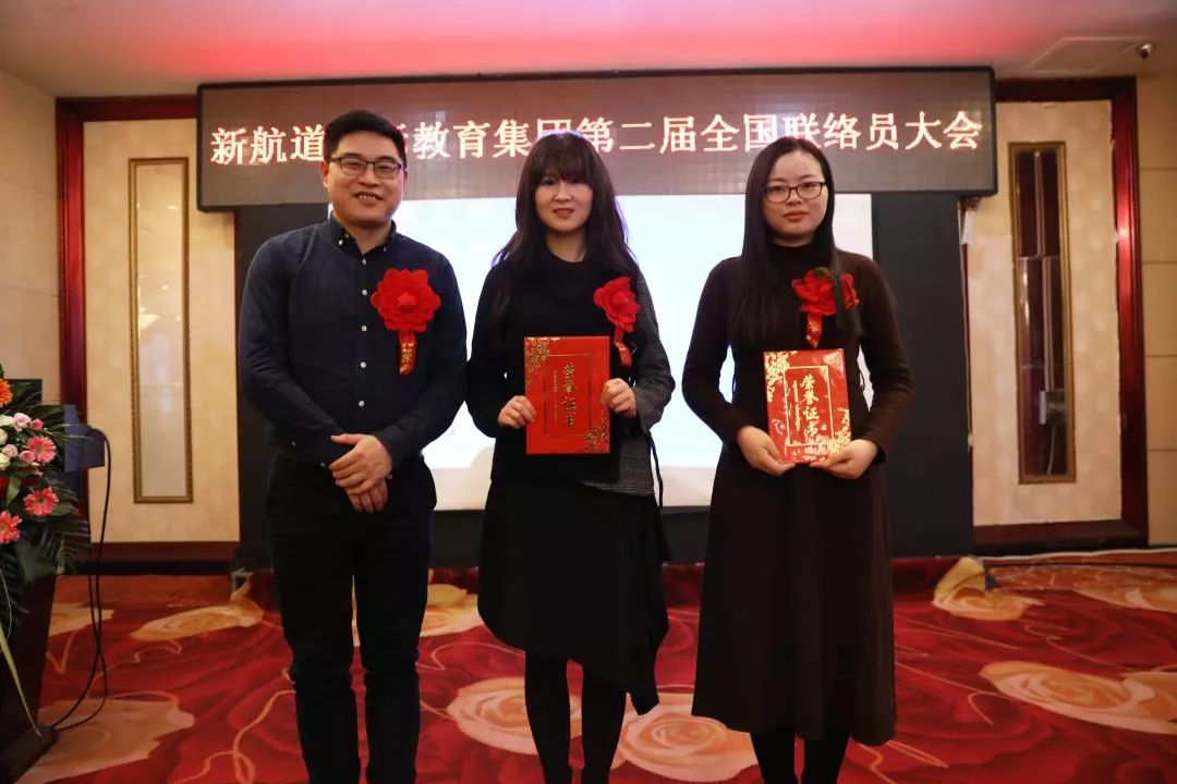 联络员获奖者是:新航道上海学校刘朝妮老师、新航道西安学校贾敏老师、新航道山东学校徐海燕老师,常校长为联络员颁奖。