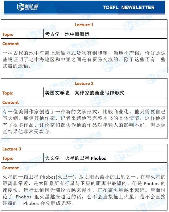 听力的lecture部分考了考古学、文学史、天文学、生物学等等。