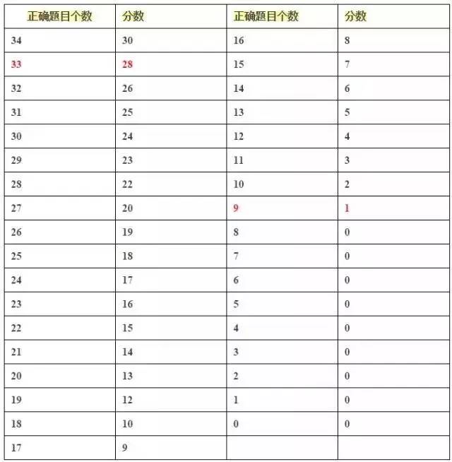 比如,学霸 A 前面正常考试部分错了一个题,但是加试做的很好,那么最终成绩极有可能上调 1 分成为29 ;或者学沫 B 费尽全力,正常考试部分做对 19 个题,根据表一来看好歹杀回 12 分,但到谁成想到了加试突然崩溃,结果分数被下调至 11 ,好不凄凉。