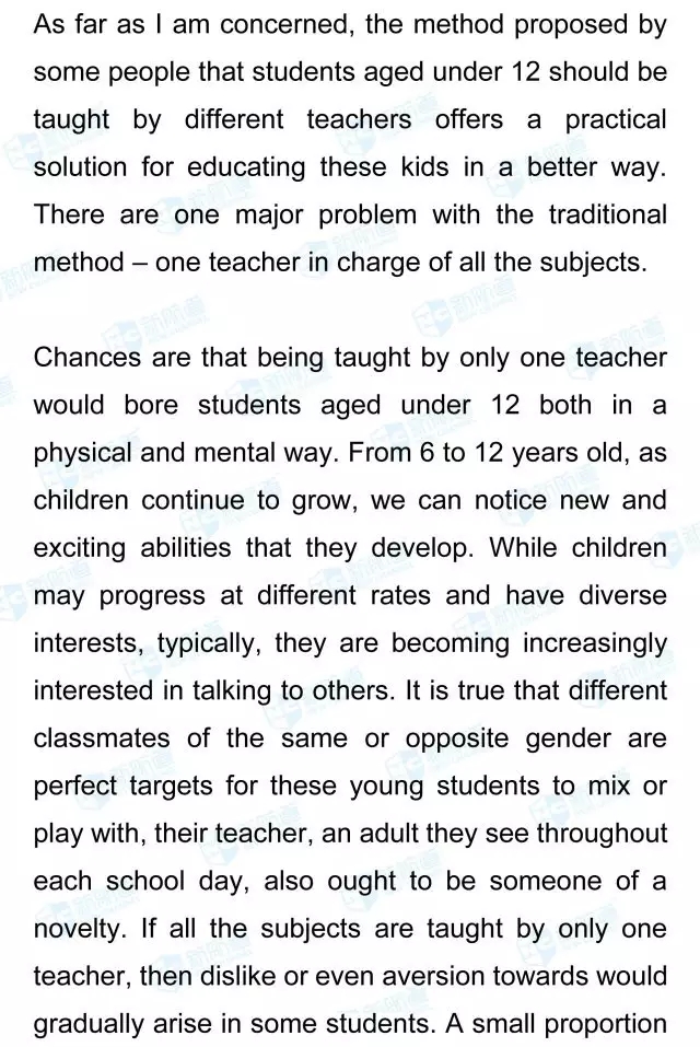 “Students aged 13-18 are taught different subjects by different teachers while younger students are taught by only one teacher all day long. Some people suggest it would benefit young students to be taught by different teachers. Do you agree with this view? Why or why not?”