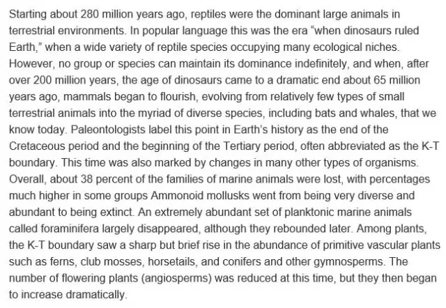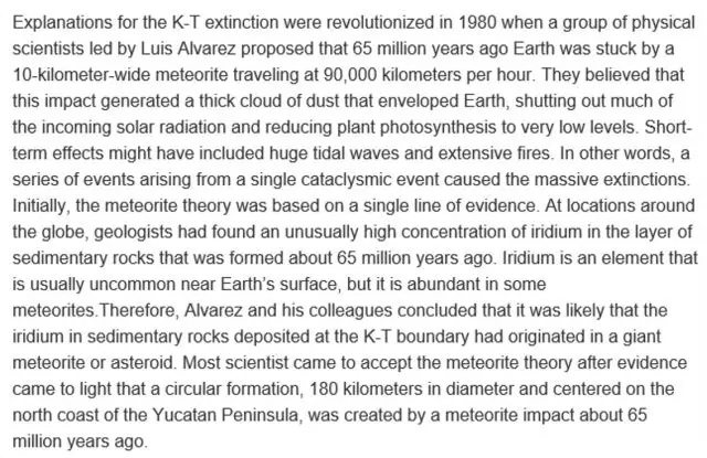 总之要看文章,要复习,要记忆。我们将就托福阅读中的一个常考话题进行处理。这个话题就是“恐龙灭绝”。