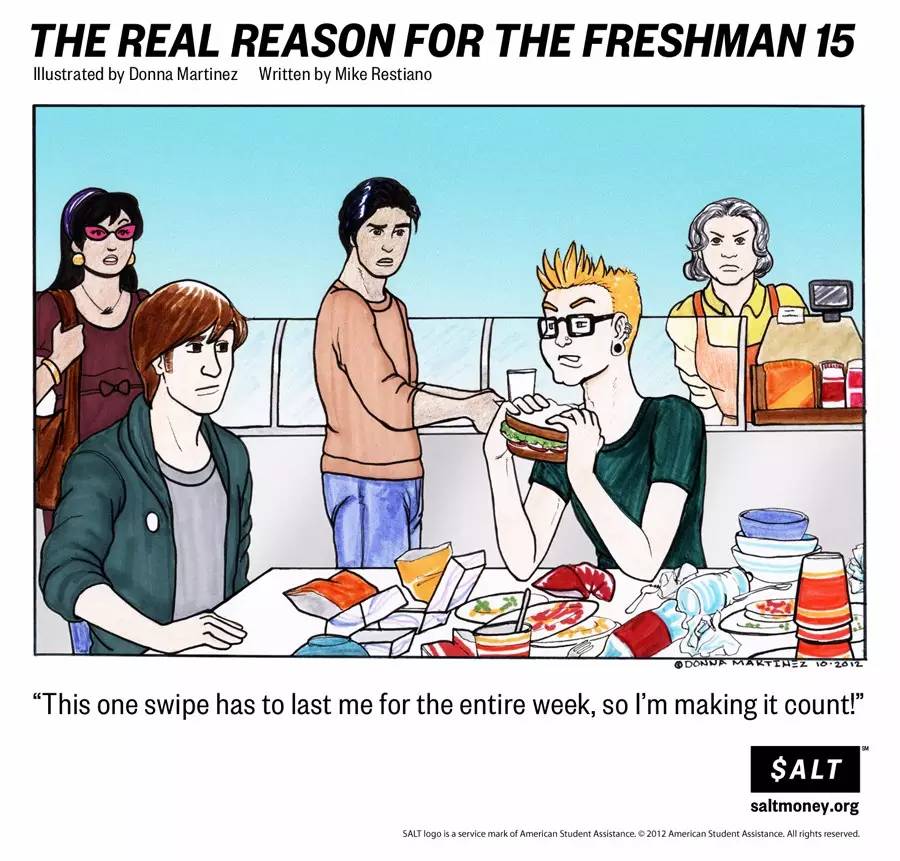 众所周知美国是多民族文化大熔炉,这一特性也代表了美国极强的包容性。在这里生活学习没有太多规矩,美国人也大多热情幽默,沟通起来没有障碍。所以在美国经常有街上的陌生人冲着你微笑,各个国家学生打成一片的场景,这也得以让身在异国的我们能够不那么拘谨地,热闹地参与到美国的日常学习和生活中去。同样,这个特点也体现在吃这件事上,美国大学里盛传的“freshman 15 ”真的不是空穴来风,而是一个个活生生的例子堆砌起来的。由于美国食物高蛋白,高热量的特点,想要保持住身材的小伙伴们就要多加注意了。