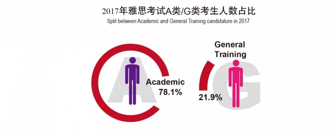 在2017年,全球考生中有78.10% 参加A 类,21.9% 参加G 类。相比2016 年A 类考生减少了2.6%, G 类考生增加了2.6%(2016 年全球考生有80.7% 参加A 类考试,19.3% 参加G 类考试)。