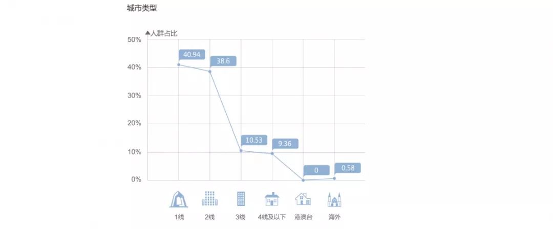 雅思考生分布最多的是城市,约占全部考生的五分之二(40.94%),二线城市的雅思考生数量(38.6%)与城市相差不多,总体来看,一、二线城市雅思考生分布高达79.54%。